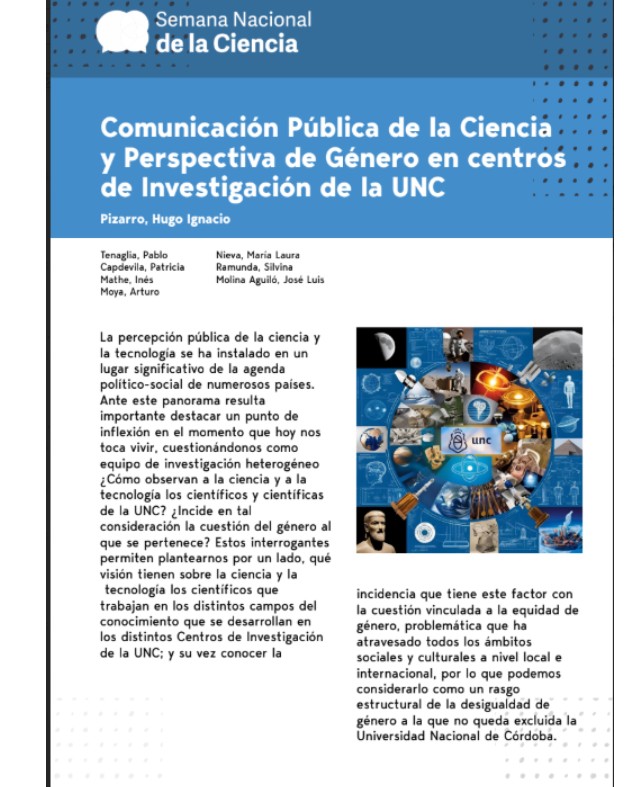 Durante la Semana Nacional de la Ciencia, Hugo Pizarro y su equipo de investigación de la UNC presentaron un informe titulado “Comunicación Pública y Perspectiva de Género en Centros de Investigación de la UNC”.