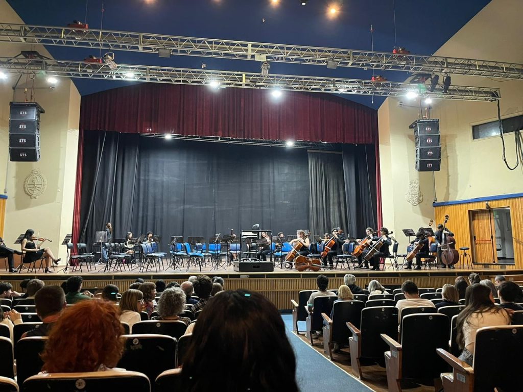 A tan solo 10 minutos de comenzar, casi todos los músicos ya se encuentran en el escenario: algunos conversando, otros saludando con una gran sonrisa a sus familiares y conocidos en el público, y la gran mayoría, extremadamente concentrados, tocando sus instrumentos sin parar.