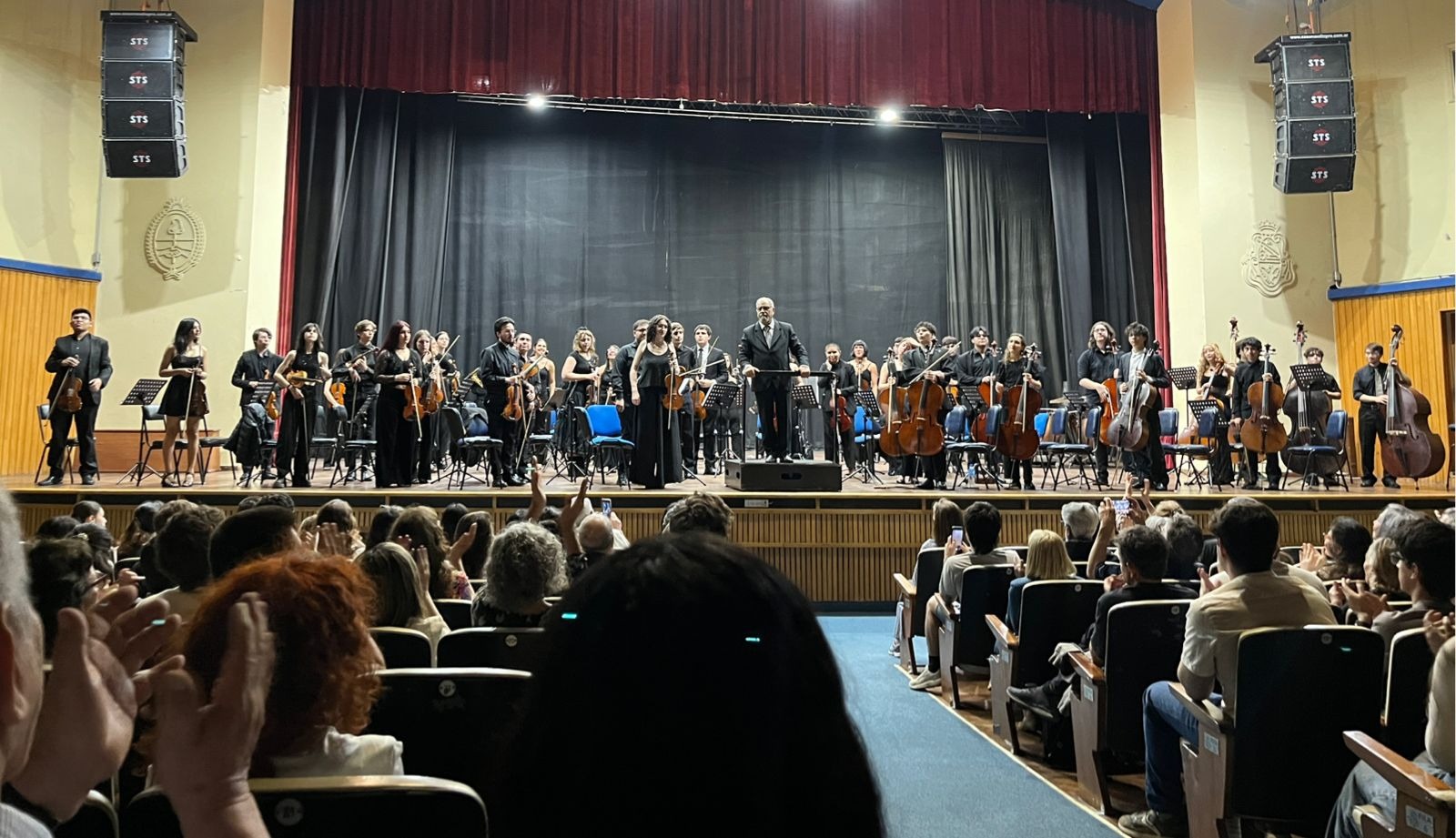 A las 21:00 termina de sonar la sinfonía, se prenden las luces y todos los músicos se paran, el director da la vuelta hacia el público, se sientan todos los músicos nuevamente siguiendo los signos que les hace, luego los levanta según la división de instrumentos progresivamente, para que así todos se lleven sus respectivos aplausos, hasta que quedan todos los músicos parados, se escuchan gritos eufóricos “¡bravo!”, algunos silbidos y muchos aplausos. Algunas personas del público hasta se paran para mostrar su máxima admiración. Suben al escenario algunos miembros familiares y conocidos a saludar a los músicos. Comienza a salir el público y despejar la sala luego de una emotiva vuelta al siglo XIX a través de la música.