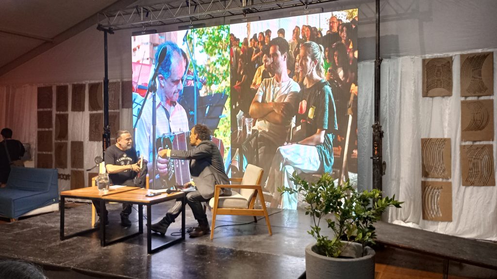La charla comenzó con una presentación original de Taborda, quien sorprendió al revelar un dato poco conocido del invitado: “No voy a presentar a Reynaldo Sietecase enumerando sus obras; todos saben que es periodista, escritor y poeta… pero pocos saben que también es contador”. Sietecase, agradeciendo la presencia del público “a pesar del calor”, aclaró que esa elección de carrera fue forzada por el cierre de las universidades de humanidades durante la última dictadura militar, un camino que finalmente lo llevó, de manera indirecta, al periodismo y la literatura.