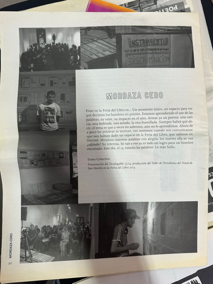 El panel también sirvió de vidriera para otros proyectos. Entre ellos se destacaron los ejemplares de la revista “Mordaza Cero”, producida por internos del Penal de San Martín como parte de un Taller de Periodismo. Sus ediciones abordan temas como la libertad, la cultura y la vida carcelaria desde la perspectiva de los propios presos.