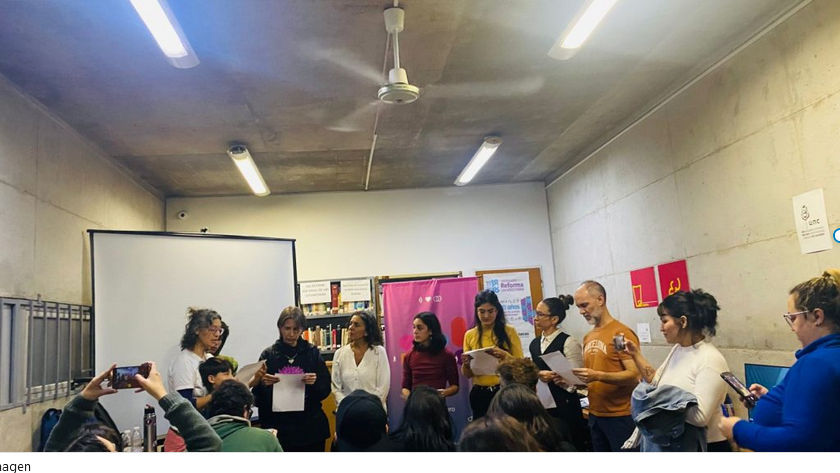 Para iniciar, Cecilia propuso una actividad. Se entregó una hoja a cada participante con la consigna de redactar un titular de un femicidio que les haya causado impotencia. Luego se leyeron en voz alta. Tras cada uno, Cecilia repetía: “Esto no es una noticia, esto es volver a matar de nuevo”. Después, se pidió reescribir el titular desde el punto de vista del participante. Esta vez decía: “Esto no es una noticia, esto es una vida”.