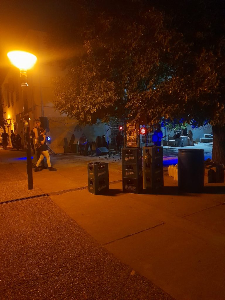 Al caer la tarde, bajo los árboles y las mesas del predio de la Facultad de Ciencias Sociales, se arma el escenario informal del Bosquecito. Las luces propias de Ciudad Universitarias están encendidas, otras cuelgan entre las ventanas del edificio y un público joven, mayoritariamente ingresantes y estudiantes de los primeros años, circula con vasos plásticos, risas al viento, y un clima relajado de bienvenida. La música que suena va del rock nacional al pop-alternativo, con algún DJ que mezcla remixes cuarteteros.